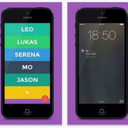 Yo, an app for iOS and Android, describes itself as “the simplest & most efficient communication tool in the world.” Once you find other friends using the app, their names will appear in big block letters on your screen. Tap a name, and the message “Yo” will appear on that person’s lock screen, from you.