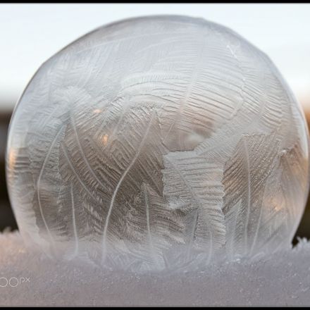 Some time ago I saw a picture of a frozen soap bubble. Now we have fairly cold weather, so I tried to do the same. It is not the easiest task, but I managed to get a couple of good shots. I hope to have more time next time, so that I can use a tripod and perhaps stack images, but having time when the correct temperature and light is available, could be a challenge.