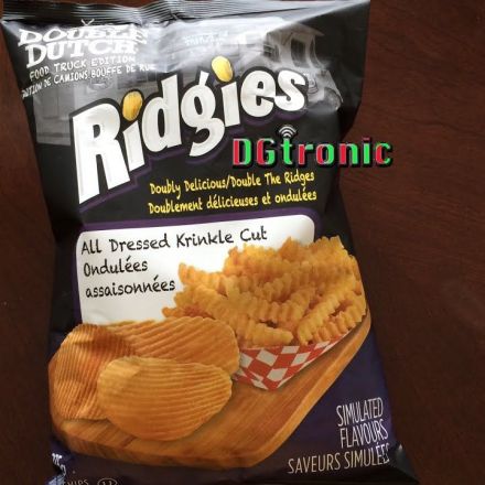 I love chips an done of my favourite flavors is ALL DRESSED . OLD DUTCH makes a sub brand called DOUBLE DUTCH and I was very happy to get my hands on its RIDGIES ALL DRESSED chips to try and review. These are ridged chips and they are orange in hue. They smell of a lot of different seasonings.
