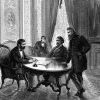 One of the most famous naval battles in history occurs as the ironclads Monitor and Virginia fight to a draw off Hampton Roads, Virginia. The ships pounded each other all morning but the armor plates easily shed the cannon…