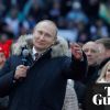 Vladimir Putin, flanked by cheering supporters, strode on to a stage in the centre of Moscow’s colossal Luzhniki Stadium and urged a crowd of tens of thousands of flag-waving Russians to join him in building a bright and joyful future for the country’s children. “Our ancestors lived here, we live here, and this is where our children and grandchildren will live,” Putin said on Saturday afternoon, at what was his sole campaign rally ahead of this month’s Russian presidential elections. “And we will do everything to make them happy!”