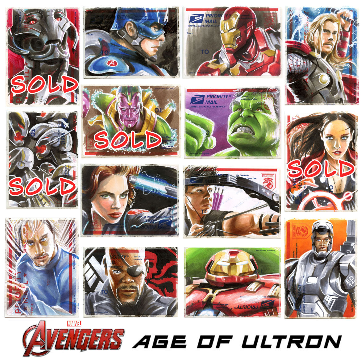 My Hand-Drawn Copic Avengers 228 Postage Sticker Series is ON SALE NOW at the Fun Guy Studios Etsy for $25 each! One-of-a-kind, limited edition series celebrating the release of Avengers: Age of Ultron!