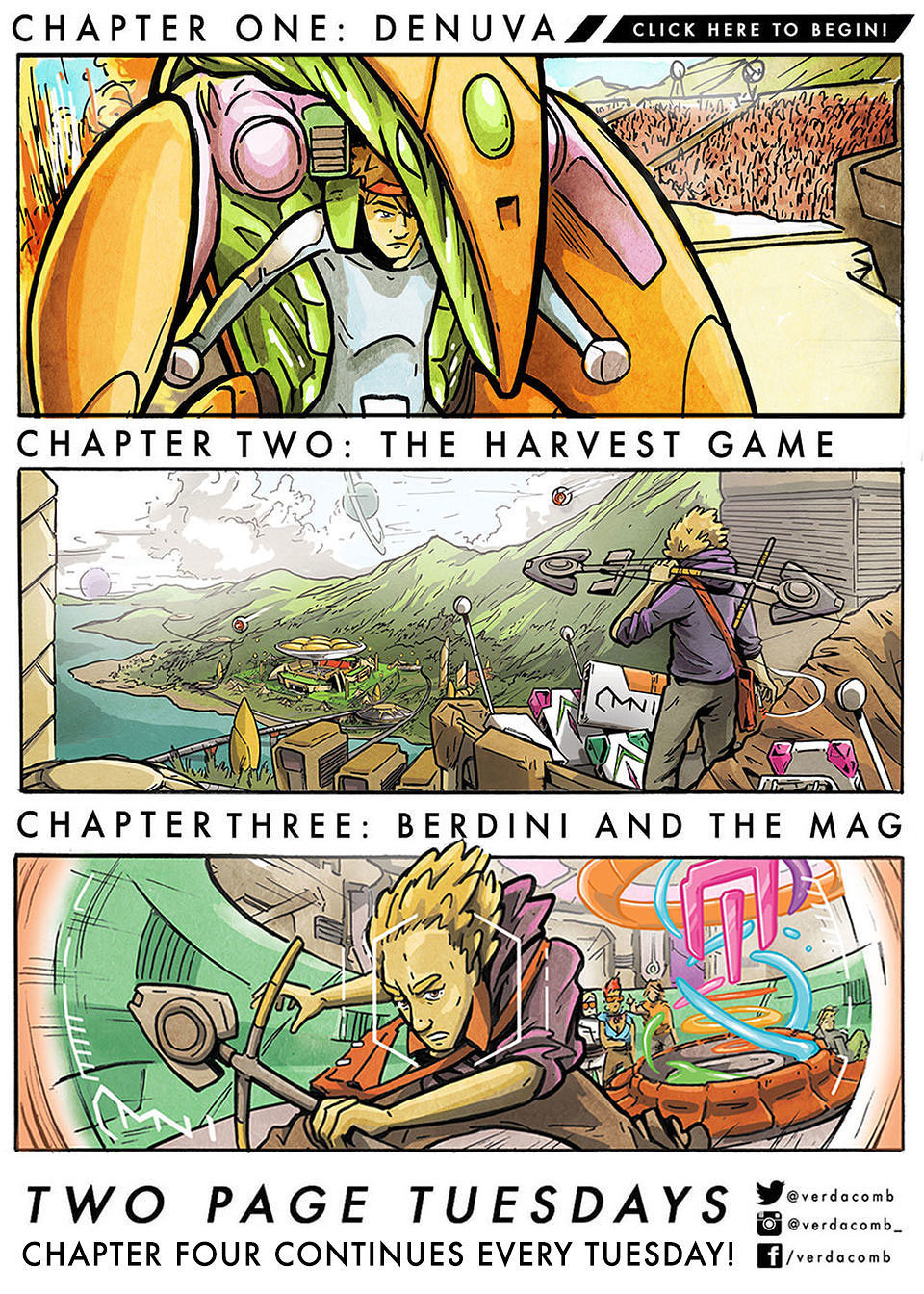 When I'm not painting the Avengers I'm working on my original graphic novel Verdacomb! I've been writing and developing the story for nearly seven years. Chapters 1-4 can be read online for free at my website VERDACOMB.com!