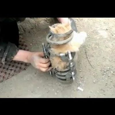 Little kitten stuck in a car suspension spring