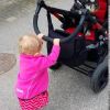 Baby girl walking a dog as a kid