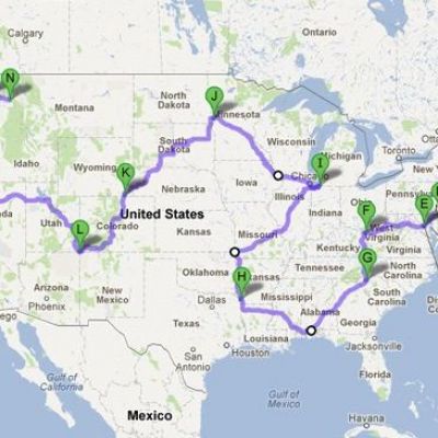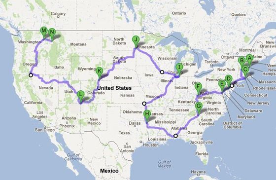 This route touches all 48 continental states of the USA